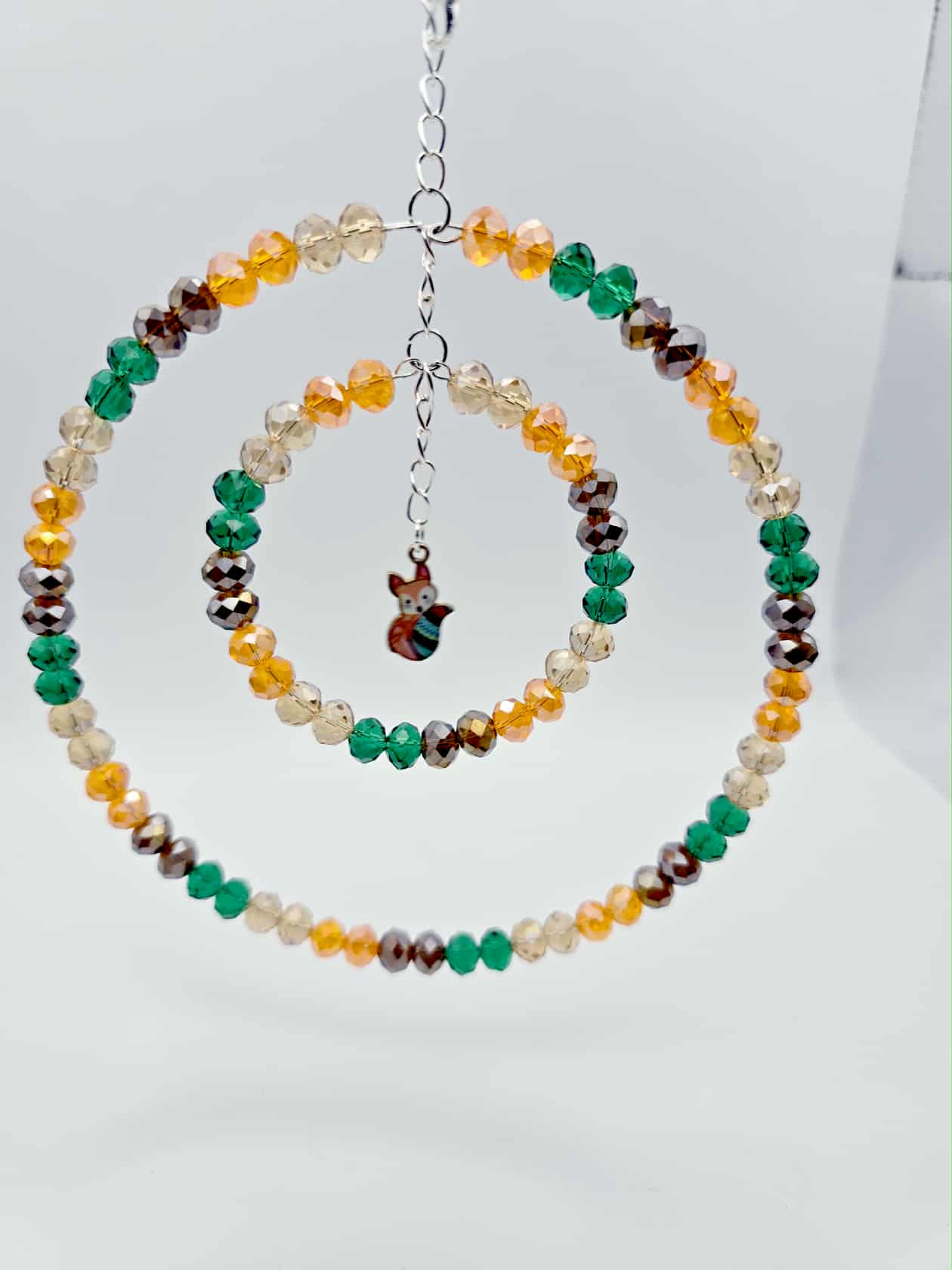 This exquisite Large Hoop Suncatcher allows you to personalise your experience by selecting your favourite colour of glass and crystal beads. Each piece is meticulously handcrafted, ensuring that it reflects your unique style and preferences.ou can also choose a specific theme that resonates with you, making this suncatcher not just a decorative item, but a meaningful addition to your space. The suncatcher features a generous 25cm chain, complete with a sturdy lobster clasp for easy hanging, and a beautiful crystal dangle that catches the light beautifully, creating a mesmerizing display. When you hang this suncatcher in your window or any well-lit area, it transforms sunlight into a dazzling array of colors that can brighten up any room. The combination of your chosen colours and themes allows for a truly customized piece that can complement your home decor or serve as a thoughtful gift for someone special. Whether you prefer a vibrant, bold look or a more subtle, serene aesthetic, this suncatcher is designed to enhance your environment and bring a touch of joy to your day.