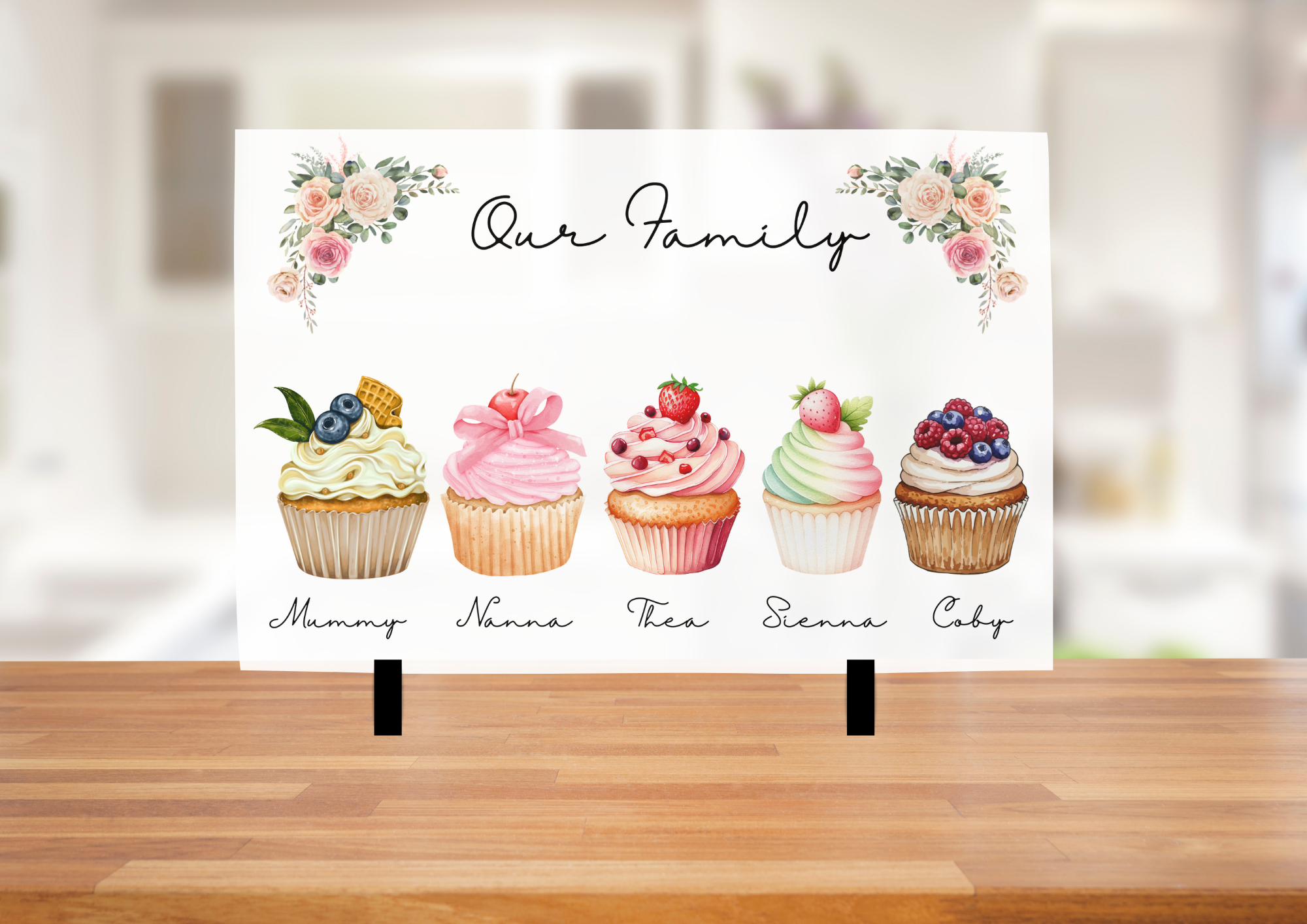 This elegant chopping board is crafted from smooth glass and features a delightful cupcake design, making it a charming addition to any kitchen. Measuring A4 in size, it provides ample space for all your chopping needs while also serving as a stylish serving platter.