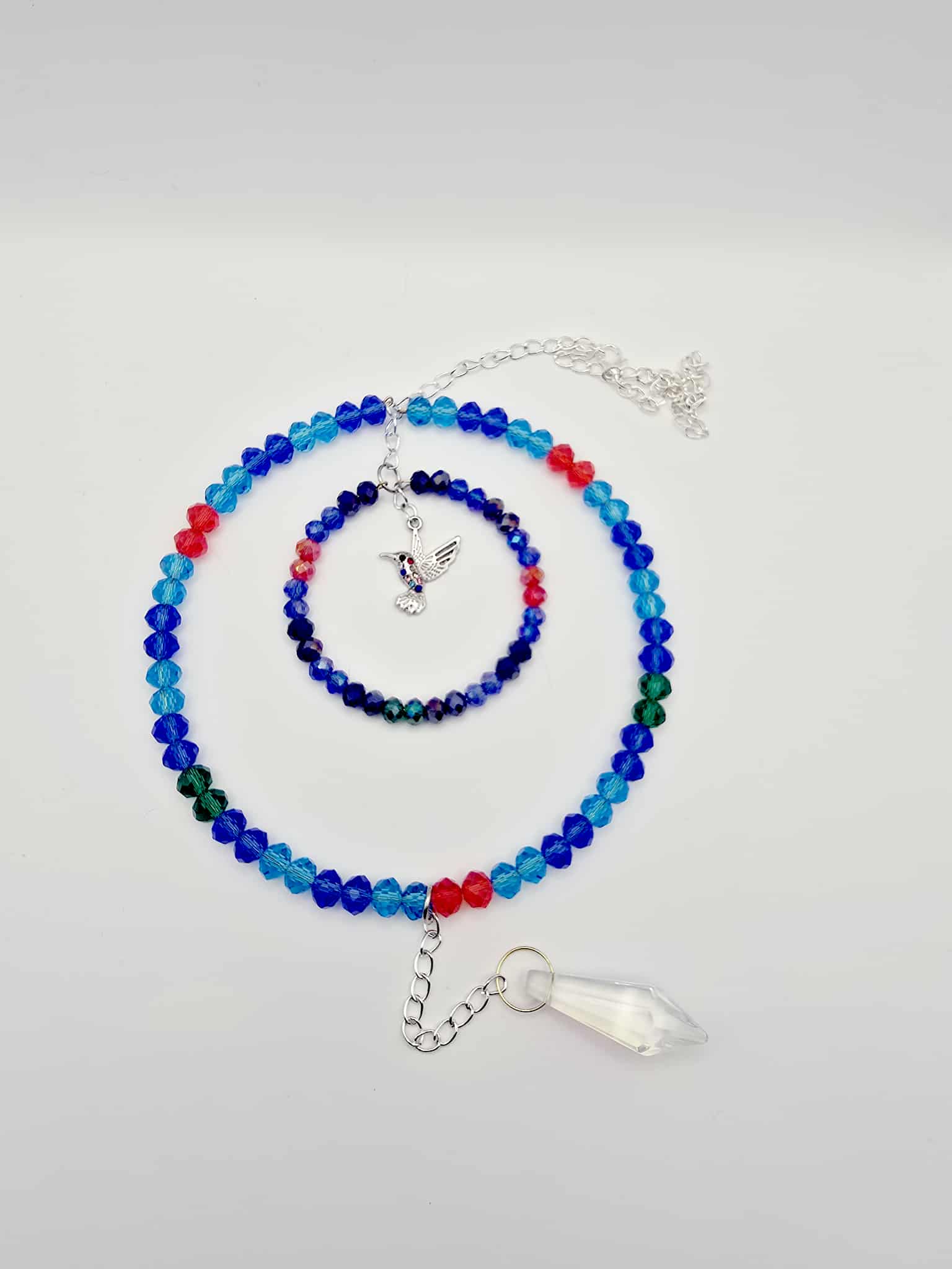 Discover the beauty of our Double Hoop Suncatcher, a unique piece that allows you to personalize your experience by selecting your favourite colour of glass. Each suncatcher is meticulously handcrafted, ensuring that every detail is thoughtfully considered.You can also choose a theme that resonates with you, making this piece not just a decoration but a reflection of your personal style. The suncatcher features a stunning arrangement of crystal beads that catch the light beautifully, creating a mesmerizing display in any setting. The suncatcher is designed with a 25cm chain, complete with a secure lobster clasp for easy hanging. At the end of the chain, a delicate crystal dangle adds an extra touch of elegance, enhancing the overall aesthetic of the piece. Whether you hang it in a window, a garden, or any other space, this suncatcher is sure to bring a touch of charm and whimsy to your surroundings. Embrace the opportunity to create a custom piece that not only brightens your home but also serves as a delightful conversation starter.