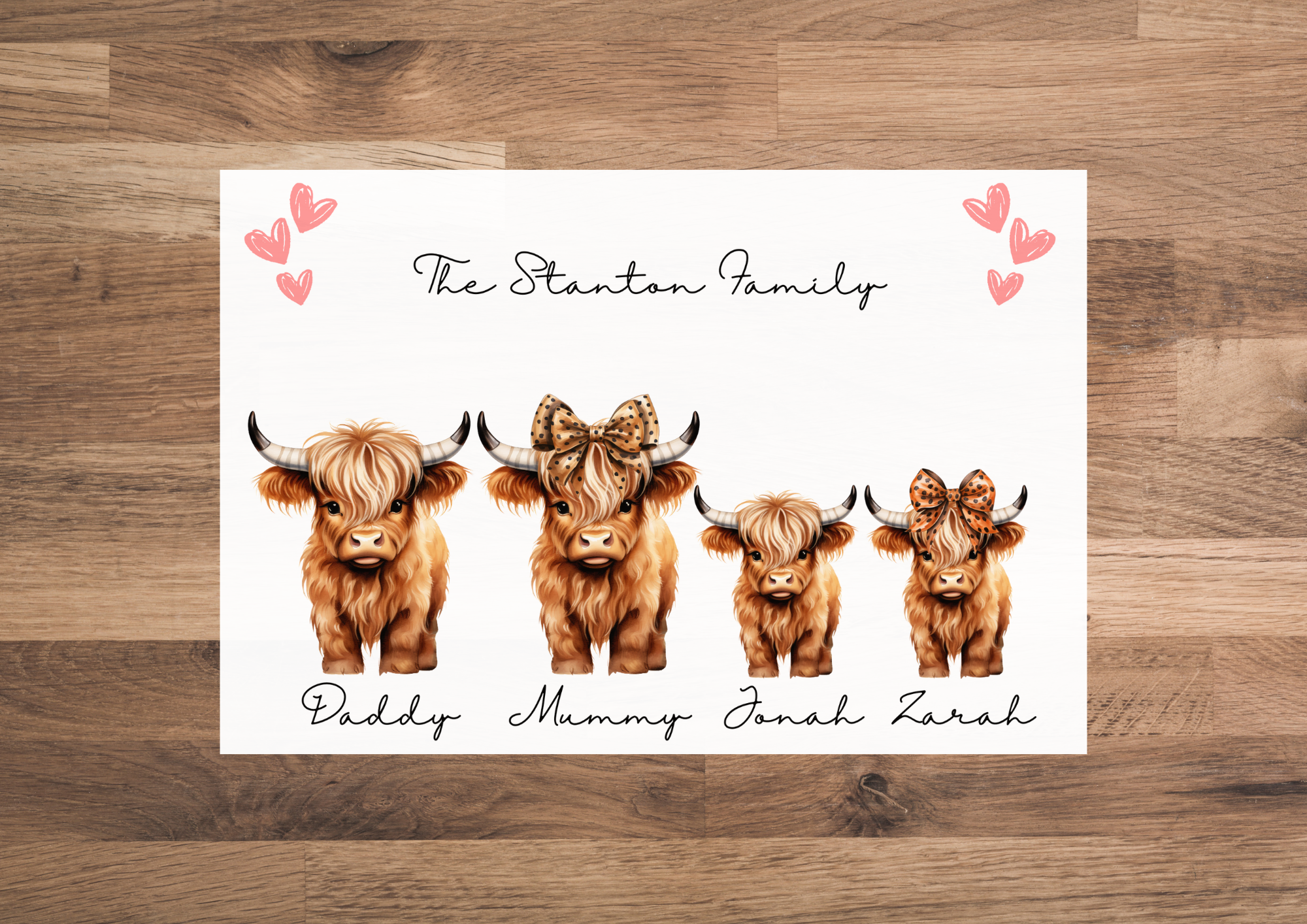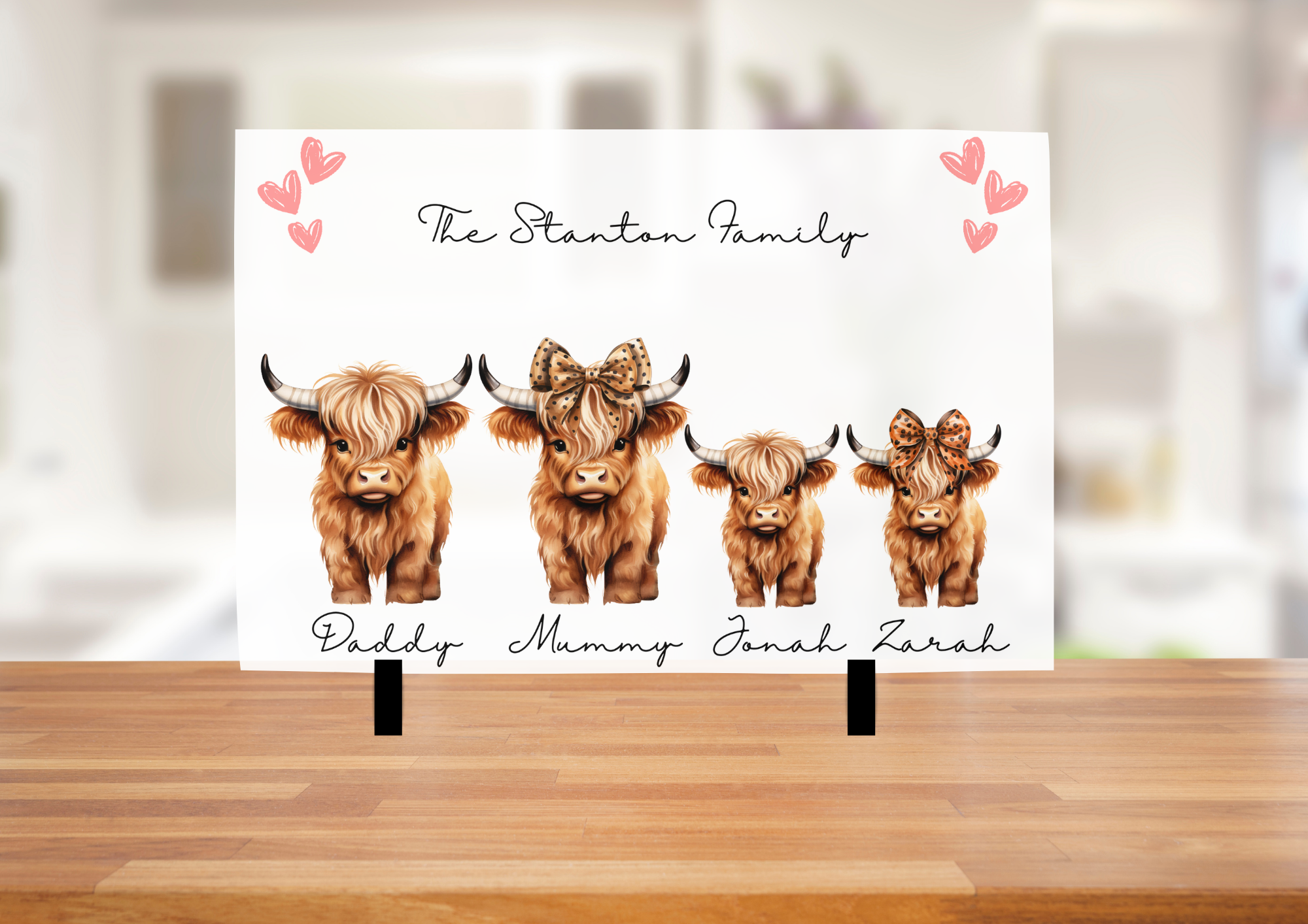 This beautifully crafted chopping board features a smooth glass surface, making it not only a practical kitchen tool but also a stylish addition to your culinary space. Measuring A4 in size, it provides ample room for all your chopping and slicing needs. What sets this board apart is its personalised touch, allowing you to add names alongside a charming Highland Cow design. This unique combination of functionality and personalisation makes it a perfect gift for weddings, housewarmings, or any special occasion where you want to add a personal flair.